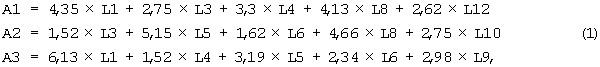 A3=6,13·L1+1,52·L4+3,19·L5+2,34·L6+2,98·L9.