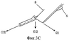 Фиг.3А-С показывают режущее движение лезвия, обладающего тремя степенями свободы по подвижности и пространственно-плоскостной геометрией.