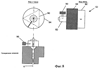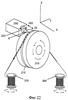 Фиг.22 показывает поворотный механизм для продвижения нити 6. На фиг.22 нить 6 показана проходящей вокруг вращающегося барабана 210, в то время как возвратно-поступательный блок 250 лезвия вырезает зазубрины вдоль оси нити 6. Нить 6 подают на барабан 210 и в канал 215 резания посредством катушки 300 для подачи нити. Зазубренную нить сматывают с барабана 210 на приемную катушку 310. Катушки 300 и 310 могут подавать и принимать нить 6 в нескрученном состоянии, или, в альтернативном случае, одна или обе катушки могут поворачиваться таким образом, чтобы скручивать и раскручивать нить 6, обеспечивая возможность создания вышеописанных спирально нарезанных зазубрин.