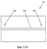 Как следует из фиг.12А, для того чтобы обеспечить равномерную посадку нити 6 на наковальню 78, предусмотрен уплотнитель 101. На уплотнителе 101 сделаны отверстия 102, 104, обеспечивающие сцепление с центровочными пальцами 70, 72. Для удерживания нити 6 во время калибровки используется канал 105. Глубина канала 105 равна толщине нити 6 над верхней стороной 80 зажимного приспособления.