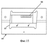 Как показано на фиг.11, шаблон 64 для резания обеспечивает траекторию 97 резания для блока 66 лезвий. Траектория 97 резания показана как контур параллелограмма. Заметим, однако, что траектория 97 резания может иметь форму прямоугольного контура, чтобы удовлетворять движениям, описанным в способе резания со ссылкой на фиг.1 или другие формы, чтобы допускать дополнительные степени свободы по подвижности лезвия, как описано со ссылкой на фиг.2-5. Также можно использовать и дополнительные шаблоны для резания, которые выполнены подобным образом и предназначены для сдвига режущего лезвия в осевом направлении. Шаблон 64 для резания должен быть идентифицируемым, чтобы подсказывать пользователю о том, что это за шаблон и на какой стадии резания его необходимо использовать. На противоположных сторонах режущего шаблона 64 имеется канал 99, размеры которого позволяют вместить в него другие участки нити 6, не подвергающиеся резанию блоком 66 лезвий.