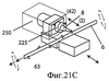 Фиг.21А-С в аксонометрии изображают линейный поворотный механизм с вращательным возвратно-поступательным блоком лезвий.