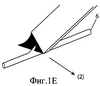 Подобно фиг.1А, фиг.1D показывает режущее движение поперек нити 6 лезвия 8, обладающего одной степенью свободы по подвижности и двумя степенями свободы по геометрии. Показанное на фиг.1D лезвие 8 является заточенным лезвием с выемкой, у которого кромка 10 имеет угол в геометрии лезвия, образованный межу краями сторон 14, 16, кроме того, между верхней и нижней плоскостями лезвия 8 имеется вогнутая или искривленная внутрь поверхность. Такая геометрическая форма обеспечивает эффект в измерениях Y и Z (т.е. по длине и глубине зазубрины) только за счет перемещения лезвия 8 в направлении X.