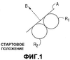 Фиг.1 представляет собой схематическую иллюстрацию двух прилегающих друг к другу радиусов кривизны R1 и R2 киля стопы и ствола голени протеза стопы, один против другого, которые создают способность динамического ответа и результирующего движения стопы при ходьбе в направлении, указанном стрелкой В, которое перпендикулярно касательной линии А, соединяющей два данных радиуса.