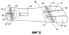 Улучшенная двигательная способность в двух плоскостях протеза стопы создана посредством отверстий 21 и 22 медиального и латерального протяженных пазов, проходящих сквозь участок 3 переднего отдела стопы между его тыльной и подошвенной поверхностями. Протяженные пазы 23 и 24 вытянуты вперед от соответствующих отверстий до переднего края участка, соответствующего переднему отделу стопы для формирования медиального, среднего и латерального протяженных упоров 25-27, которые создают улучшенную двухплоскостную двигательную способность участка переднего отдела киля стопы. Отверстия 21 и 22 протяженных пазов расположены по линии В-В на фиг.5. В поперечной плоскости, которая расположена под углом , равным 35° к продольной оси А-А киля стопы, причем медиальное отверстие 21 протяженного паза располагается ближе к передней части протеза, чем латеральное отверстие 22 протяженного паза.