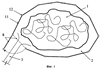 Верхняя часть 7 защитного барьера, устраиваемая на поверхности почвы 4, выполняется из эластичного материала, например полиэтиленовой пленки 11, причем сначала устанавливают стойки 12, к которым впоследствии прикрепляется пленка 11 или полосы рулонного полиэтилена, либо в виде насыпаемой из сыпучего материала дамбы, либо в виде сплошной вертикальной стенки, например кирпичной или бетонной, сплошной или из отдельных сборных секций.