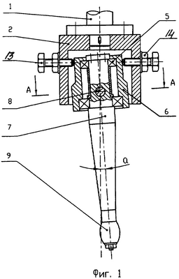 На фиг.2 показано сечение раскатника по А-А, где видна установка подшипникового корпуса 6 на полуосях 8 и их крепление в стенке стакана 2.