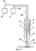 При обработке материалов с рифленой поверхностью (фиг.3) применяют полые трубчатые электроды 28 с острием 29, совмещающие функции иглы и сопла и расположенные под углом 90° к обрабатываемой поверхности 18. Поддув газа к полым трубчатым электродам осуществляется от газодинамического блока 12 по изолированному шлангу 15.