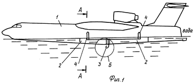 на фиг.1 представлен общий вид самолета-амфибии на плаву;