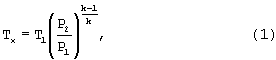 Температура воздуха Тх, К, вытекающего из сопла Лаваля 15, определяется по формуле 1, [2]:
