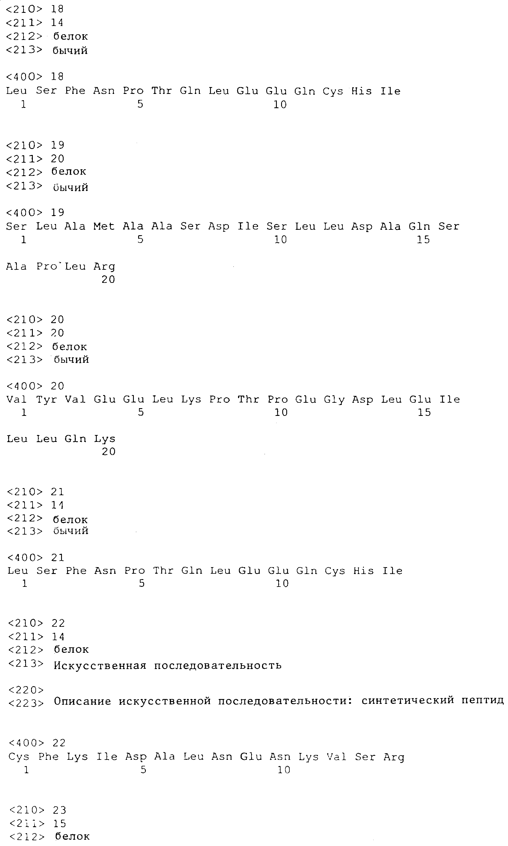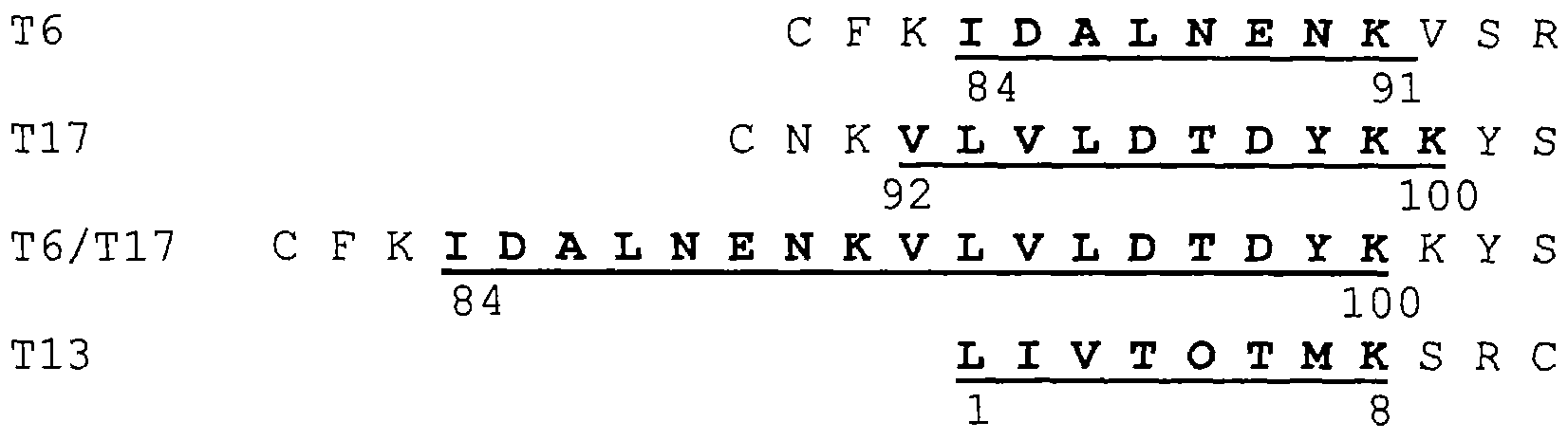 22-го сентября 2000 г. рекомбинантные плазмиды, содержащие пептиды Т6 и Т17, были депонированы в соответствии с Будапештским договором в Институте Пастера и им присваивали депозитные №№ CNCM I-2563 и CNCM I-2564 соответственно.