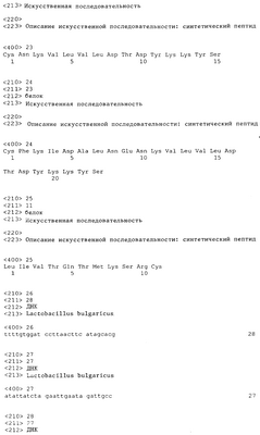 1. Трансформированная молочно-кислая бактерия, экспрессирующая на поверхности клеток рекомбинантный полипептид, включающий фрагмент протеазы L.Bulgaricus и толерогенный пептид, таким образом, что фрагмент экспрессируемого пептида, соответствующий протеазе L. Bulgaricus, встроен в клеточную стенку, а фрагмент экспрессируемого пептида, соответствующий толерогенному пептиду, экспонирован на поверхности клеток, причем толерогенный пептид устойчив к расщеплению ферментами желудка и двенадцатиперстной кишки и сохраняет свою толерогенную активность.