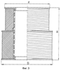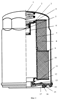 на фиг.3 показан комбинированный фильтрующий элемент в сборе, содержащий центральную перфорированную трубу, две торцевые крышки, разделительную крышку, фильтрующую штору первой секции, фильтрующую штору второй секции (общий вид, разрез).