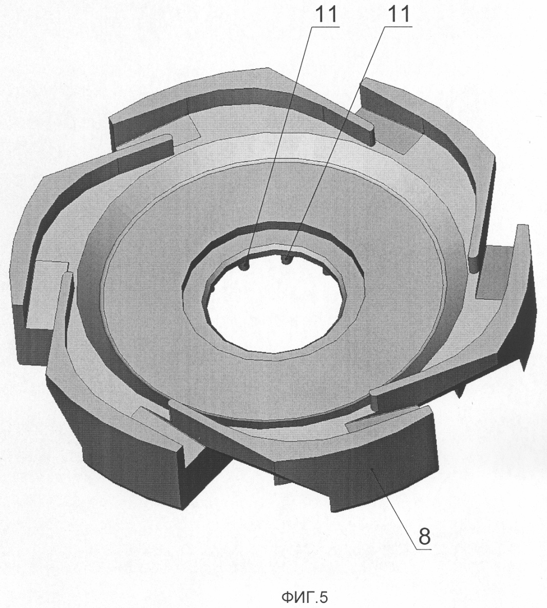 Отличием от аналогов также являются признаки, касающиеся выполнения радиально-опорных подшипников с кольцами, установленными на кольцевых корпусных элементах направляющих аппаратов и на ведомых дисках рабочих колес, а также размещения пары шпоночных канавок на валу. Такое конструктивное выполнение дополнительно предотвращает осевые перетоки рабочей жидкости между ступенями насоса.