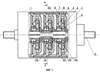 3. Погружной многоступенчатый центробежный насос, характеризующийся тем, что он содержит набор ступеней, собранных на валу в цилиндрическом корпусе, включающих рабочие колеса с горловинами, ведущими дисками, соединенными лопатками с ведомыми дисками, неподвижные направляющие аппараты с кольцевыми корпусными элементами, расточками и ребрами, формирующими направляющие каналы, элементы крепления рабочих колес и направляющих аппаратов, защитные втулки, соединенные с валом и входящие в расточки направляющих аппаратов, радиально-опорные подшипники и опорные элементы для фиксации рабочих колес, причем насос снабжен перегородками, установленными на дне направляющих каналов, выполненных с пазами, и на дне этих пазов, при этом радиально-опорные подшипники выполнены с кольцами, установленными на кольцевых корпусных элементах направляющих аппаратов и на ведомых дисках рабочих колес, элементы крепления рабочих колес выполнены в виде пар шпоночных канавок и установленных в них шпонок индивидуально для каждого рабочего колеса, шпоночные канавки расположены на ведущих дисках и на валу насоса одновременно, пары шпоночных канавок, соответствующие двум соседним рабочим колесам, смещены по внешней поверхности вала таким образом, что их сечения не перекрываются плоскостями, включающими ось вала насоса.