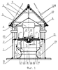 Каждая из створок 5 установлена на корпусе 1 посредством шарнира 6, ось 7 которого (фиг.1, 4) расположена ниже центра масс (ЦМ) створки 5, что обеспечивает ее закрытие в нерабочем положении. При наличии нескольких створок 5 они могут образовывать колпак. В этом случае при выполнении створок 5 при виде в плане в форме треугольника с конической или плоской поверхностью колпак имеет форму соответственно конуса или пирамиды (фиг.1, 2), при виде створок 5 в плане в форме трапеции с конической или плоской поверхностью колпак имеет форму усеченного конуса или усеченной пирамиды (не показано). При наличии двух створок 5 колпак может иметь форму призмы (фиг.1, 3). Колпак, образованный створками 5, оснащен каркасом, закрепленным на корпусе 1 и включающим ребра 8 с верхней соединительной перемычкой 9 (фиг.1). Створки 5 оснащены ограничителем поворота, расположенным у их основания и выполненным, например, в виде хвостовика 10 (фиг.4), причем в месте контакта хвостовика 10 с корпусом 1 может быть установлен упругий элемент, например, в виде плоской пружины 11. Стенки корпуса 1 и створок 5 могут выполняться с панелями из звукопоглощающего и/или теплоизолирующего материалов (на фиг.4 не обозначено).