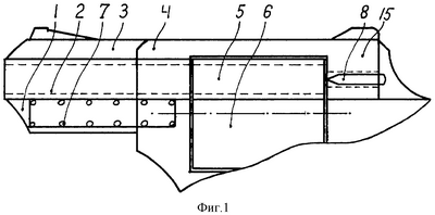 При производстве выстрела, под действием отдачи ствол 2, жестко соединенный с силовой соединительной планкой 3, свободная камора 5 и затвор 14, запертые боевыми выступами 11 и 13 свободной каморы 5 и боевыми упорами 10 силовой соединительной планки 3 и затвора 14 двигается вправо /фиг.7/, при этом ствол 2 входит в соответствующее отверстие барабана 6, а силовая соединительная планка 3 в сквозной открытый паз “А”.
