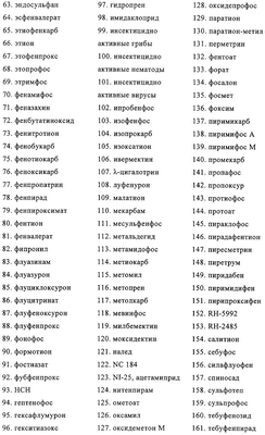По результатам этого опыта было установлено, что соединения формулы I обеспечивают значительное уменьшение количества нематод у зараженных животных. Так, в частности, при применении соединений 1.31 и 1.61 при их введении в дозах 32 мг/кг заражение животных гельминтами Trichostrongylus снижается на 100%, а при их введении в дозах 10 мг/кг – на 97%.