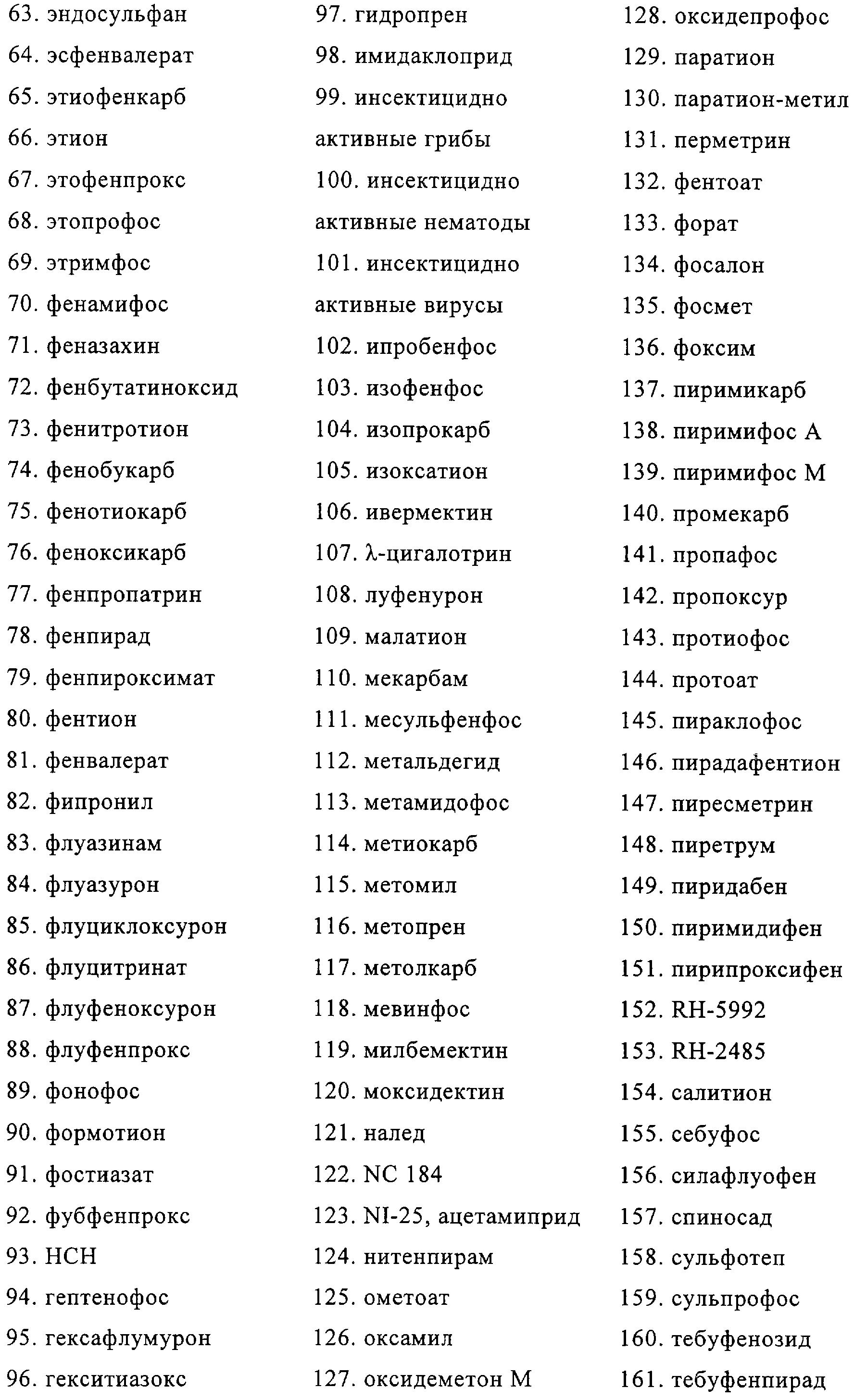 Галогензамещенные углеродсодержащие группы и соединения могут быть частично галогенированными или пергалогенированными, при этом галогеновые заместители в случае полигалогенирования могут быть идентичными или различными. Примерами галоалкила в качестве индивидуальной группы и в качестве структурного элемента других групп и соединений, таких как галоалкоксигруппа, служат метил, который в качестве заместителей содержит от одного до трех атомов фтора, хлора и/или брома, например CHF2 или CF3, этил, который в качестве заместителей содержит от одного до пяти атомов фтора, хлора и/или брома, например CH2CF3, CF2CF3, CF2CCl3, CF2CHCl2, CF2CHF2, CF2CFCl2, CF2CHBr2, CF2CHClF, CF2CHBrF или CClFCHClF, пропил либо изопропил, каждый из которых в качестве заместителей содержит от одного до семи атомов фтора, хлора и/или брома, например СН2CHBrCH2Br, CF2CHFCF3, СН2CF2CF3 или СН(CF3)2, и бутил либо один из его изомеров, каждый из которых в качестве заместителей содержит от одного до девяти атомов фтора, хлора и/или брома, например CF(CF3)CHFCF3 или СН2(CF3)2CF3.