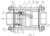 Вариант. Установить ушко 4 тарелки 3 (Фиг.1, 3) в проушинах 2 (Фиг.2) седла 1 (Фиг.1, 3) при этом уплотнительные поверхности седла и тарелки расположить соосно. Затем уплотнительные поверхности соединить и произвести совместную обработку отверстия под ось 5 (Фиг.2) и установить последнюю. Установить седло 1 (Фиг.1, 3) в сборе с тарелкой 3 и осью 5 в часть корпуса 8, установив между ними герметизирующую прокладку 7 из упругого материала, например из терморасширенного графита. Закрепить резьбовой втулкой 6 седло 1 в части корпуса 8. Соединить корпус 8 с фланцами 9 и 9а при помощи гаек 14 и шпилек 15, установив между ними уплотняющие прокладки 16 и 16а.