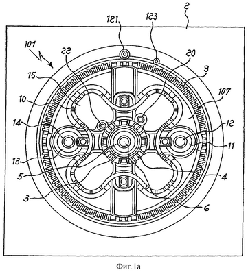 фигура 1a – общий вид сверху на газовую горелку для кухонных плит в первом варианте осуществления настоящего изобретения, без накрывающих элементов;