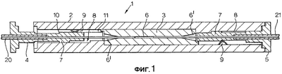 фиг.1 – схематическое представление продольного сечения первого варианта осуществления устройства для сращивания, соответствующего настоящему изобретению;