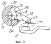 Например, в варианте, показанном на фиг.6, на центральном корпусе подвижного контакта 10 имеются две смежно расположенные подобные кулачку поверхности 16, причем каждая имеет соответствующую поверхность 15 опоры; соответственно, относительно решения с единственными контактами на валу 20 имеются также дополнительные центры вращения: со ссылкой на центр 23 вращения четвертый центр 34 вращения прикреплен к валу в сущности в симметричном положении относительно второго центра 24 вращения, и пятый центр 35 вращения расположен симметрично относительно третьего центра 25 вращения и функционально эквивалентен ему. Две дополнительные пружины 8 прикреплены к двум центрам 34 и 35 вращения и также расположены на взаимно противоположных сторонах относительно второго плеча 12.