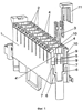 Другой элемент новизны, который предлагается с соединительным печатным проводником, заключается в том, что внутри гнезд или полостей, в которых размещены терминалы, имеются некоторые углубления или уступы для правильного размещения терминала, поскольку последний имеет специальную конфигурацию, причем все это сделано так, чтобы протаскивание посредством соответствующего инструмента в результате приводило не только к смещению проводов через терминалы и срезанию избыточного провода для образования соединения, но также образовывало элементы опоры как для ребер, которые являются частью терминалов, так и самих проводов в их конечном местоположении.
