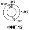На фиг.12 показан второй вариант выполнения датчика, в котором датчик положения содержит переменный резистор. Датчик положения включает в себя неподвижный контакт 1260, резистивную поверхность 1269 и промежуток 1265 на резистивной поверхности 1269, при этом все сформированы на закрепленном элементе 909. Подвижный контакт 1263 прикреплен к соединительному элементу (соединительный элемент 903 для ясности не показан). При использовании подвижный контакт 1263 может поворачиваться на датчике положения, когда перемещается соответствующий электронный элемент. Необходимо понять, что провод или другой проводник должен поэтому проходить от подвижного контакта 1263 к схемной плате 1035 датчика положения (не показана). Сопротивление, принимаемое соответствующей схемной платой 1035 датчика положения, поэтому будет изменяться с поворотом датчика положения.
