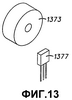 На фиг.13 показан третий вариант выполнения датчика, в котором датчик положения содержит магнит 1373 и датчик 1377 Холла. Магнит 1373 предпочтительно прикреплен к торцу соединительного элемента 903, и датчик 1377 Холла прикреплен к или встроен в закрепленный элемент 909. Магнит 1373 может состоять из множества магнитных северных и южных полюсов и может состоять из многочисленных магнитов или магнитных полюсов различной интенсивности и ориентации.