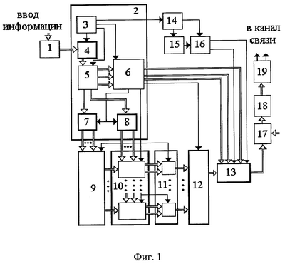 На фиг.1 показана схема выполнения предлагаемого цифрового устройства для передачи и защиты информации в сетях связи;
