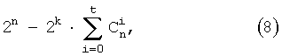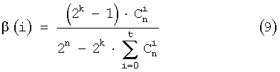 Далее оценивают количество трансформированных слов T(i) внутреннего кода с исправлением i ошибок по формуле
