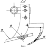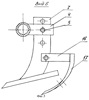 Сущность заявляемого изобретения поясняется чертежами, где на фиг.1 показано орудие, вид сверху; на фиг.2 – вид орудия сбоку; на фиг.2а – вид по стрелке Д на фиг.2; на фиг.3 – вид по стрелке А на фиг.1 (вид дискового ножа и передней стойки с ворошителями); на фиг.3а – вид по стрелке С на фиг.3 ( вырез передней грани стоек, вид спереди); на фиг.4 – разрез В-В на фиг.1 (разрез дискового ножа и передней стойки с местным вырезом для просмотра крепления стрельчатой лапы со стойкой и ворошителя за счет болтов); на фиг.5 – вид по стрелке Б на фиг.1 (вид второй длинной стойки с почвоуглубителем); на фиг.6 – разрез Г-Г на фиг.1 (разрез второй длинной стойки).
