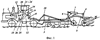 1. Комбинированный почвообрабатывающий агрегат, содержащий тяговое средство, включающее двигатель с турбонаддувом, коробку передач и гидросистему, основную и шарнирно соединенную с ней дополнительную рамы с установленными на них соответственно основными и дополнительными почвообрабатывающими рабочими органами, снабженными механизмом периодического подъема дополнительных почвообрабатывающих органов, гидравлически связанным с гидрораспределителем тягового средства, а также средство определения загрузки двигателя, последнее выполнено в виде автоматического измерителя загрузки, содержащего датчик давления наддува турбокомпрессора двигателя и последовательно соединенный с ним согласующий усилитель, первое исполнительное устройство перемещения, выход которого соединен посредством тяги с рычагом включения гидрораспределителя тягового средства, второе исполнительное устройство перемещения, выход которого соединен посредством тяги с рычагом переключения скоростей коробки передач тягового средства, и управляющее устройство, при этом выход управляющего устройства соединен с первым и вторым исполнительными устройствами, кроме того, управляющее устройство выполнено в виде первого сравнивающего элемента, задающего элемента и первого компаратора, причем второй вход первого сравнивающего элемента связан с выходом задающего элемента, выход первого сравнивающего элемента соединен с входом первого компаратора, а первый вход его является первым входом управляющего устройства, отличающийся тем, что в него дополнительно введены экстраполятор, определитель оптимума, блок уставок и формирователь команд обработки, второй компаратор, третье исполнительное устройство перемещения, а в управляющее устройство – второй вход, являющийся входом задающего элемента, и третий вход, являющийся вторым входом первого компаратора, причем выход автоматического измерителя загрузки соединен с первым входом экстраполятора, первый выход которого связан с первым входом управляющего устройства, а второй выход с первым входом определителя оптимума, выход блока уставок подключен к второму входу управляющего устройства, к третьему входу которого подключен выход определителя оптимума, к вторым управляющим входам экстраполятора, определителя оптимума и управляющему входу блока уставок подключен формирователь команд обработки, причем выход определителя оптимума соединен с входом второго компаратора, выход которого, в свою очередь, через третье исполнительное устройство связан тягой с рейкой управления топливоподачей.