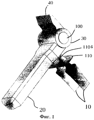 Модуль головки 30 составляет пару с блоком гребня 40. Модуль головки 30 так же шарнирно прикреплен к основному корпусу 20 устройства, как и на сушилке для волос.