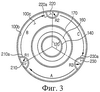 Со ссылкой на фиг.3 следует, что имеются камеры 210-230, с первой по третью, в соответствии с предпочтительным вариантом выполнения настоящего изобретения. В частности, камеры 210-230, с первой по третью, размещены под углом приблизительно в 120° по отношению друг к другу вдоль внутренней боковой стенки 100b корпуса 100.