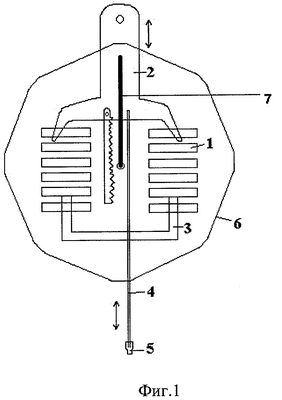 Тензоалгометрия проводилась при помощи тензоалгометра, содержащего корпус и контактный элемент, размещены в едином корпусе, в котором установлен пружинный механизм, включающий две пружины, каждая из которых прикреплена одним концом к подвижному элементу, а другим концом соединена с зафиксированной в корпусе пластиной, подвижный элемент соединен с зубчатой рейкой, взаимодействующей с шестерней, на оси которой установлен стрелочный указатель, причем к подвижному элементу прикреплен одним концом контактный элемент в виде измеряющего щупа, другой конец которого выступает из корпуса через отверстие в нем (фиг.1) (RU 49703 U1, 10.12.2005).
