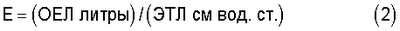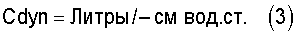 Например, у того же пациента X значение дыхательного объема легких на уровне ОЕЛ составляет 0.5 литра, ему соответствует 2.5 см вод. ст. на кривой транспульмонального давления. Следовательно, Cdyn составляет 0.2 л/см вод. ст. Для более точного определения Cdyn предпринимается три попытки расчета Cdyn в трех разных дыхательных циклах спонтанного дыхания, из которых берется максимальное значение. При подставлении значений Е и Cdyn в формулу определяют общую и динамическую растяжимость легких и рассчитывают коэффициент функциональной активности легких по формуле: