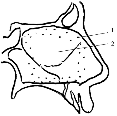 Изобретение пояснено чертежом, на котором изображена боковая проекция перегородки носа.
