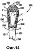 Фиг.13 – вид снизу головки зубной щетки, показывающий конфигурацию расположений щетины согласно настоящему изобретению;