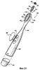 Фиг.21 – частичное изображение в перспективе с пространственным разделением деталей зубной щетки, показываемой на чертеже Фиг.20, с изображением некоторых компонентов и их сборки;