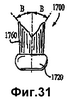 Фиг.30 – выполненный по линии 30-30 вид с торца головки зубной щетки, показываемой на чертеже Фиг.29;