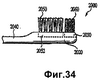 Фиг.34 – частичная боковая вертикальная проекция головки зубной щетки согласно настоящему изобретению, с изображением еще одной конфигурации щетины;