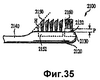 Фиг.35 – частичная боковая вертикальная проекция головки зубной щетки согласно настоящему изобретению, с изображением еще одной конфигурации щетины;