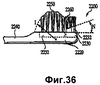 Фиг.36 – частичная боковая вертикальная проекция головки зубной щетки согласно настоящему изобретению, с изображением еще одной конфигурации щетины;