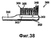 Фиг.37 – частичная боковая вертикальная проекция головки зубной щетки согласно настоящему изобретению, с изображением еще одной конфигурации щетины;