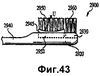 Фиг.43 – частичная боковая вертикальная проекция головки зубной щетки согласно настоящему изобретению, с изображением еще одной конфигурации щетины;