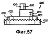 Фиг.55 также показывает предпочтительное зубчатое колесо 4200 узла 400. Зубчатое колесо 4200 аналогично зубчатому колесу 806 чертежа Фиг.12, зубчатому колесу 3356 чертежа Фиг.48, зубчатому колесу 3456 чертежа Фиг.49 и зубчатому колесу 3556 чертежей Фиг.50 и 51. То есть зубчатое колесо 4200 установлено и функционирует аналогично монтажу и функционированию указанных зубчатых колес. Но зубчатое колесо 4200 использует особый набор криволинейных поверхностей. В частности, зубчатое колесо 4200 имеет совокупность зубцов 4210, расположенных по его периметру. Ведущее зубчатое колесо, прикрепленное к электродвигателю, предпочтительно зацепляет или иным образом связано с зубчатым колесом 4200 и с зубцами 4210 зубчатого колеса. Круглое металлическое основание 4220 расположено на внешней поверхности зубчатого колеса 4200 и между противоположными участками зубцов 4210 зубчатого колеса. На основании 4220 расположен и проходит от него в наружном направлении первый эксцентрик 4230, имеющий круглую эксцентриковую поверхность 4232, которая проходит по периметру эксцентрика 4230. От первого эксцентрика 4230 проходит второй эксцентрик 4240. Второй эксцентрик 4240 имеет круглую эксцентриковую поверхность 4242, которая проходит по периметру второго эксцентрика 4240. Центр второго эксцентрика 4240 совпадает с центром основания 4220 и центром зубчатого колеса 4200. При повороте зубчатого колеса 4200, например вокруг оси вращения А, как показано на Фиг.55, второй эксцентрик 4240 и основание 4220 вращаются вокруг той же оси, т.е. оси А. Центр первого эксцентрика 4230 показан на чертеже Фиг.55 как ось В и отделен от оси А интервалом и предпочтительно параллелен ей.