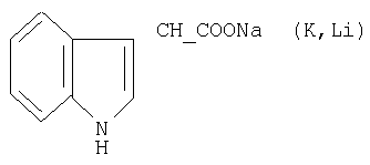 Формула натриевой (калиевой, литиевой) соли индолилуксусной кислоты (C9H8NO3Na) (K; Li):