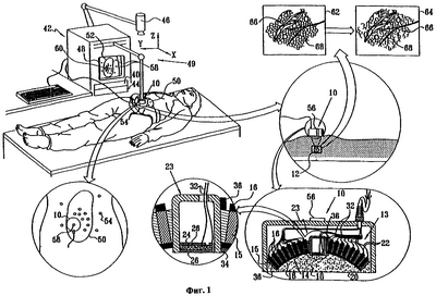 108. Устройство для расщепления жировой ткани, содержащее направляющее устройство, направляющее ультразвуковое излучение во множество целевых областей внутри зоны, целевые области которой содержат жировую ткань, для того чтобы выборочно расщеплять указанную жировую ткань в целевых областях и в общем случае не расщеплять не жировые ткани в целевых областях, и модуль компьютерного отслеживания, выполняющий компьютерное отслеживание указанных целевых областей, несмотря на движение указанного тела.